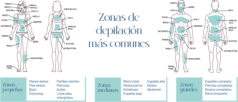 *El paquete de depilación adquirido es exclusivo para las zonas establecidas, que luego seleccionarás durante el asesoramiento inicial.